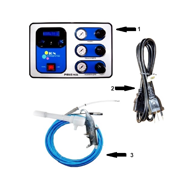 Itens que formam o produto Fonte geradora de alta tensão e pistola PTM-1