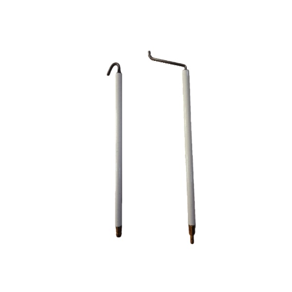 Descrição: Os eletrodos de ignição e sensores de chama são fabricados com material isolante cerâmico e uma haste de liga metálica chamada Kanthal que nada mais é do que uma liga de resistência elétrica composto por ferro, cromo e alumínio (Fe, Cr, Al) que oferece segurança, resistência térmica e praticidade devido a sua flexibilidade para os sistemas de aquecimento. Este material pode ser dobrado de diversas formas com muita facilidade. Algumas outras empresas costumam utilizar uma liga de aço inox, porem sua dobra e corte se tornam muito difíceis e quebram com facilidade inclusive no ato de dobradura devido a rigidez do material, sem contar também que sua vida útil é bem inferior. Devido a esta resistência e flexibilidade optamos por fabricar eletrodos somente com Kanthal.