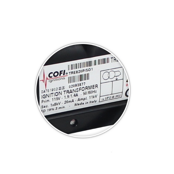 Descrição: O transformador de ignição Cofi TRE820 PISO1 é um componente utilizado em sistemas de combustão industrial, especialmente em queimadores que operam com gás, óleo leve ou pesado.