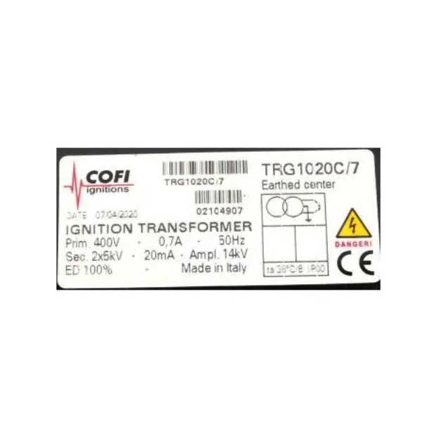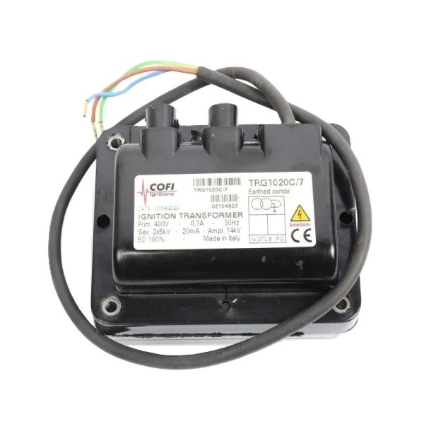 Descrição: O transformador de ignição Cofi TRG1020C/7 é um componente utilizado em sistemas de combustão industrial, especialmente em queimadores que operam com gás, óleo leve ou pesado.