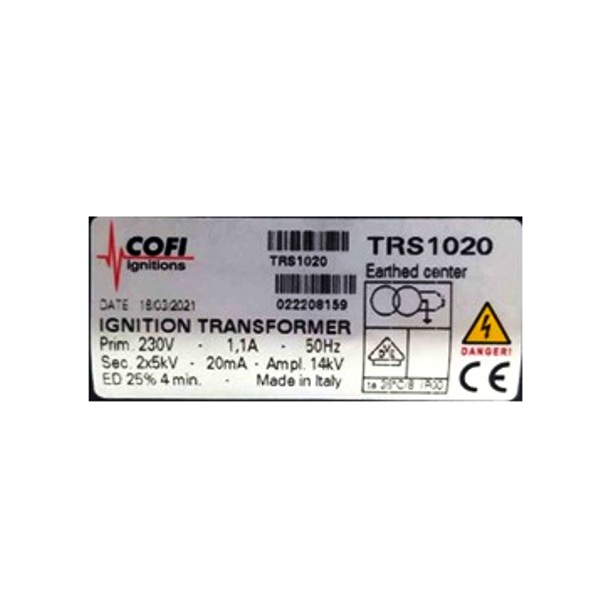 Descrição: O transformador de ignição Cofi TRS-1020 é um componente utilizado em sistemas de combustão industrial, especialmente em queimadores que operam com gás, óleo leve ou pesado.