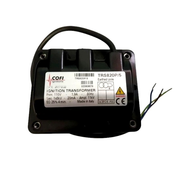 Descrição: O transformador de ignição Cofi TRS-820P/5 é um componente utilizado em sistemas de combustão industrial, especialmente em queimadores que operam com gás, óleo leve ou pesado.