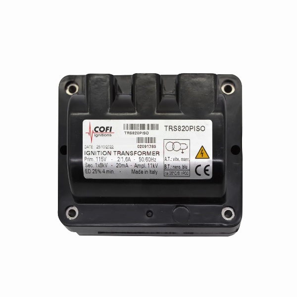 Descrição: O transformador de ignição Cofi TRS-820PISO é um componente utilizado em sistemas de combustão industrial, especialmente em queimadores que operam com gás, óleo leve ou pesado.